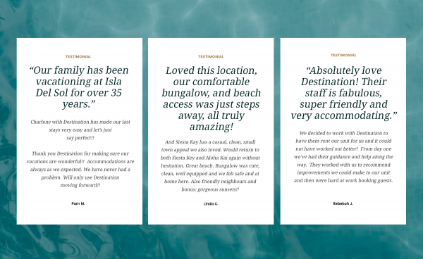 Destination's expansive portfolio of vacation properties on and around Florida’s Gulf Coast offer a range of options so you can select a property that best fits the vacation you envision.